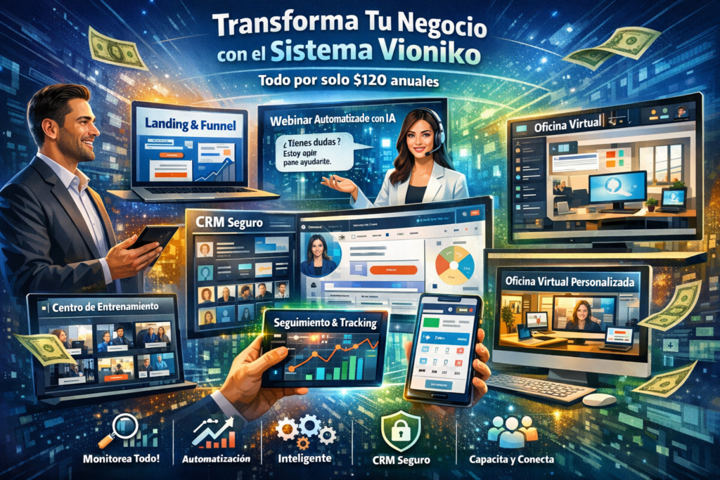 Al unirte a Vioniko, accedes a un paquete tecnológico completo diseñado para transformar tu proceso de captación y crecimiento, que incluye: